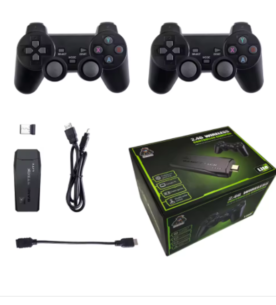 Lista de paquetes:1 consola de juegos, 2 gamepads inalámbricos, 1 receptor USB, 1 cable de alimentación, 1 cable de extensión compatible con HD