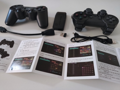 Instrucciones de configuración:1.Conecte el receptor y el cable USB al dispositivo,2.Conecte el USB al puerto USB del televisor o a cualquier banco de energía para fuente de alimentación,3.Conecte el stick al puerto HDMI del televisor y juegue,4.Presione el botón Seleccionar y Iniciar juntos para regresar al menú principal